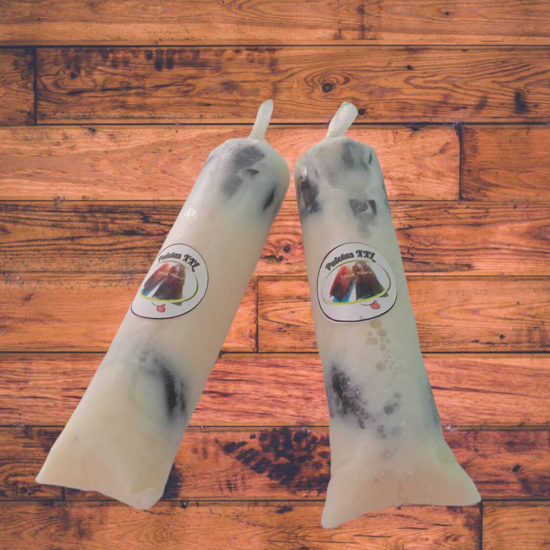 Paleta de coco cubierta de chocolate y granillo de nuez