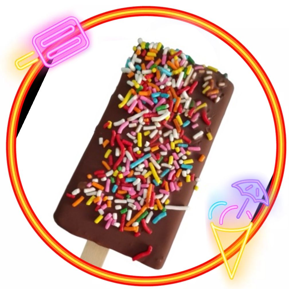6 oz de helado de fresa cubierto de chocolate y chispas de colores