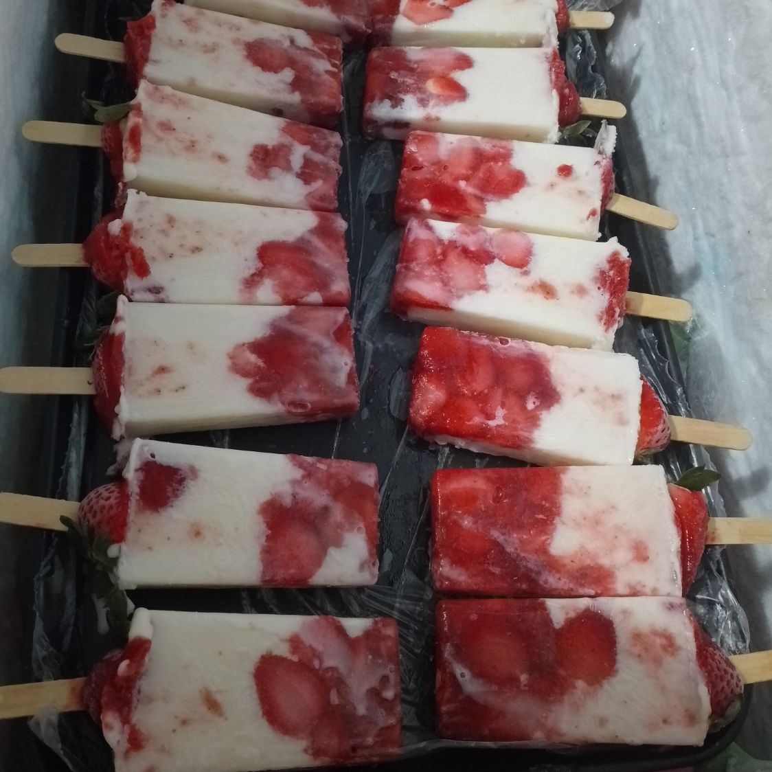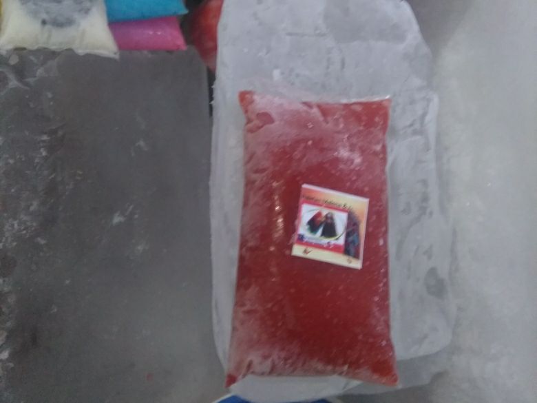 Cajita de fruta congelada, incluye sobre de crema de la marca duero