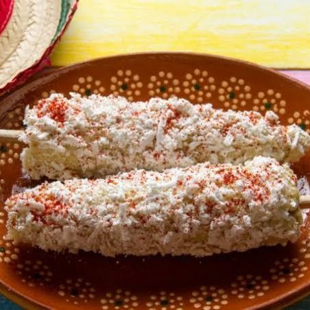 Elote sancochado, con queso y mediacrema, incluye sobre de chile y limón