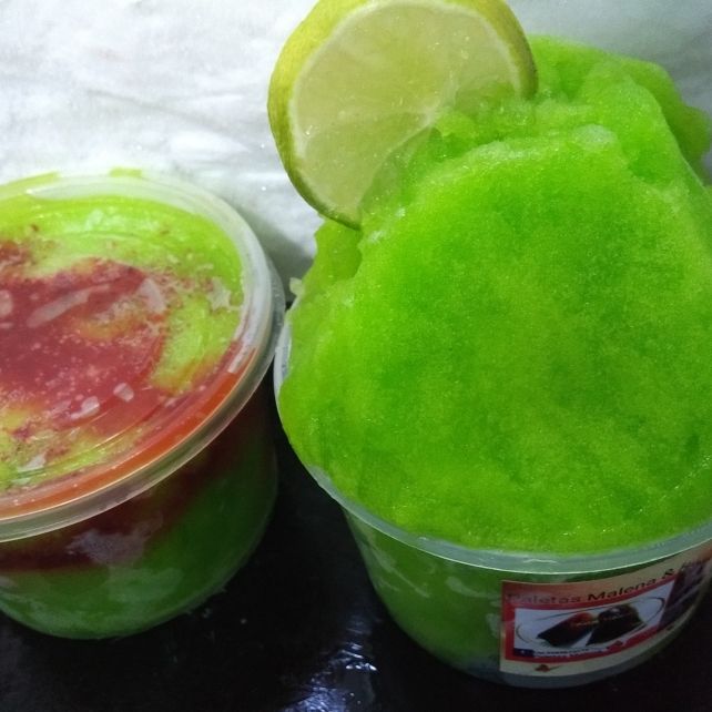 Contiene: NIEVES DE MANGO Y LIMÓN mango picado, chamoy y trajín