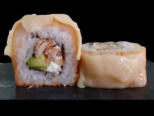 PD: Pollo empanizado, aguacate y phidadelphia - PF: Rollo empanizado, queso gratinado con piña