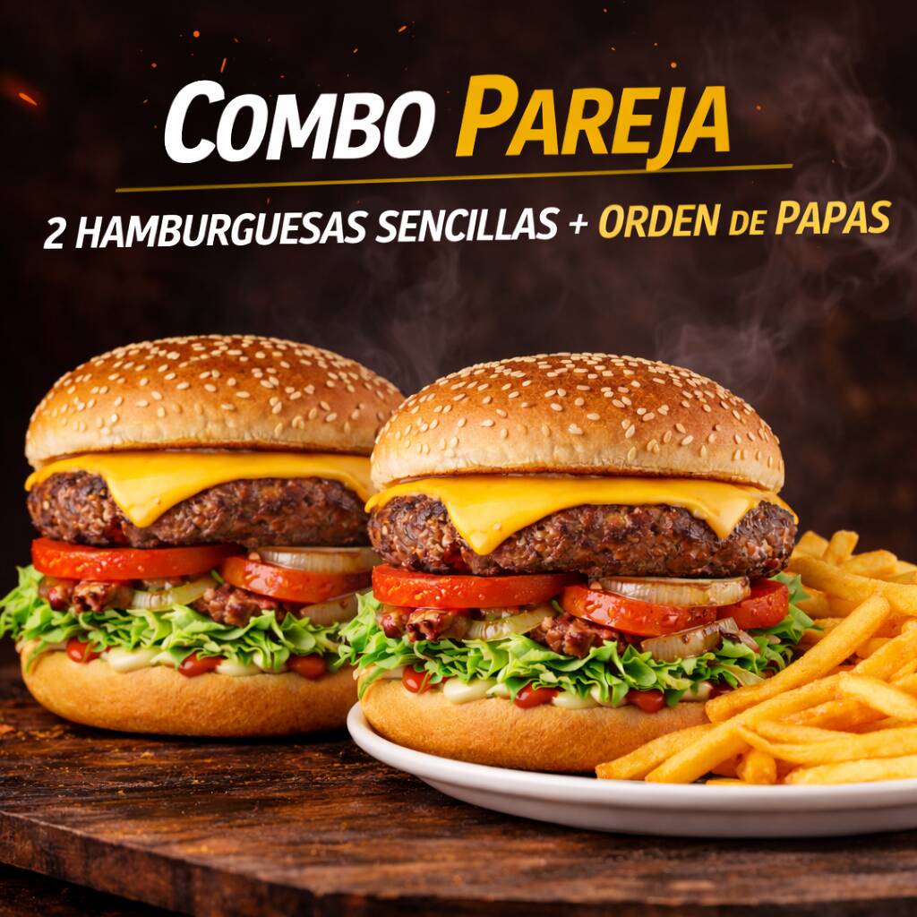 Hamburguesa Sencilla*2 + Orden de Papas a la Francesa Chicas*1
