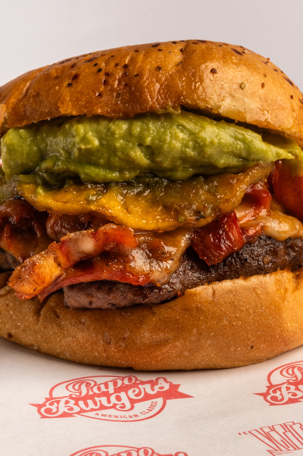 Carne de 150 g 100 % de res choice, pan casero con especias, carne al pastor con queso cheddar, piña en almíbar a la plancha y un slide de guacamole.