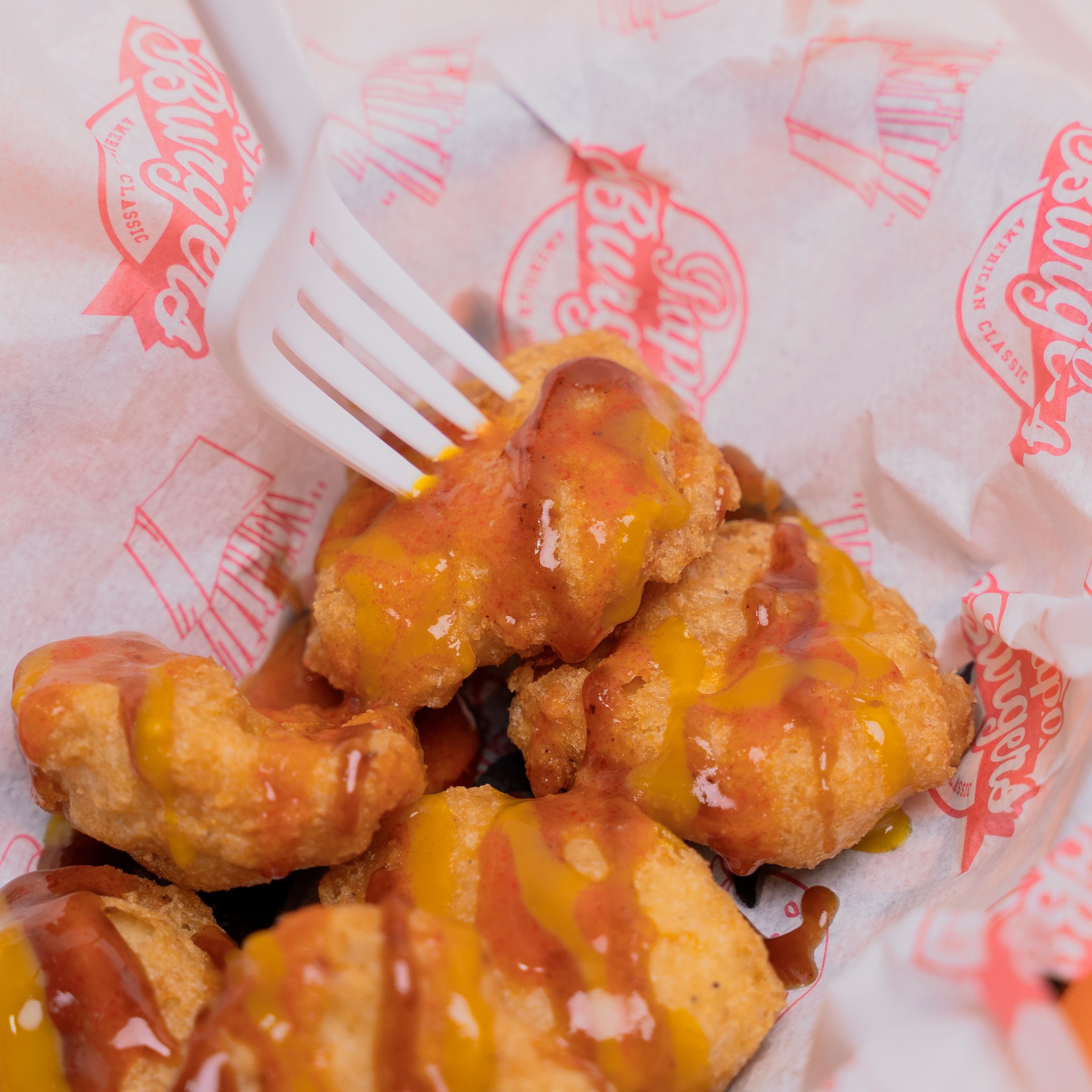 500 g de Boneless de pechuga de pollo, bañados con la salsa de tu preferencia.