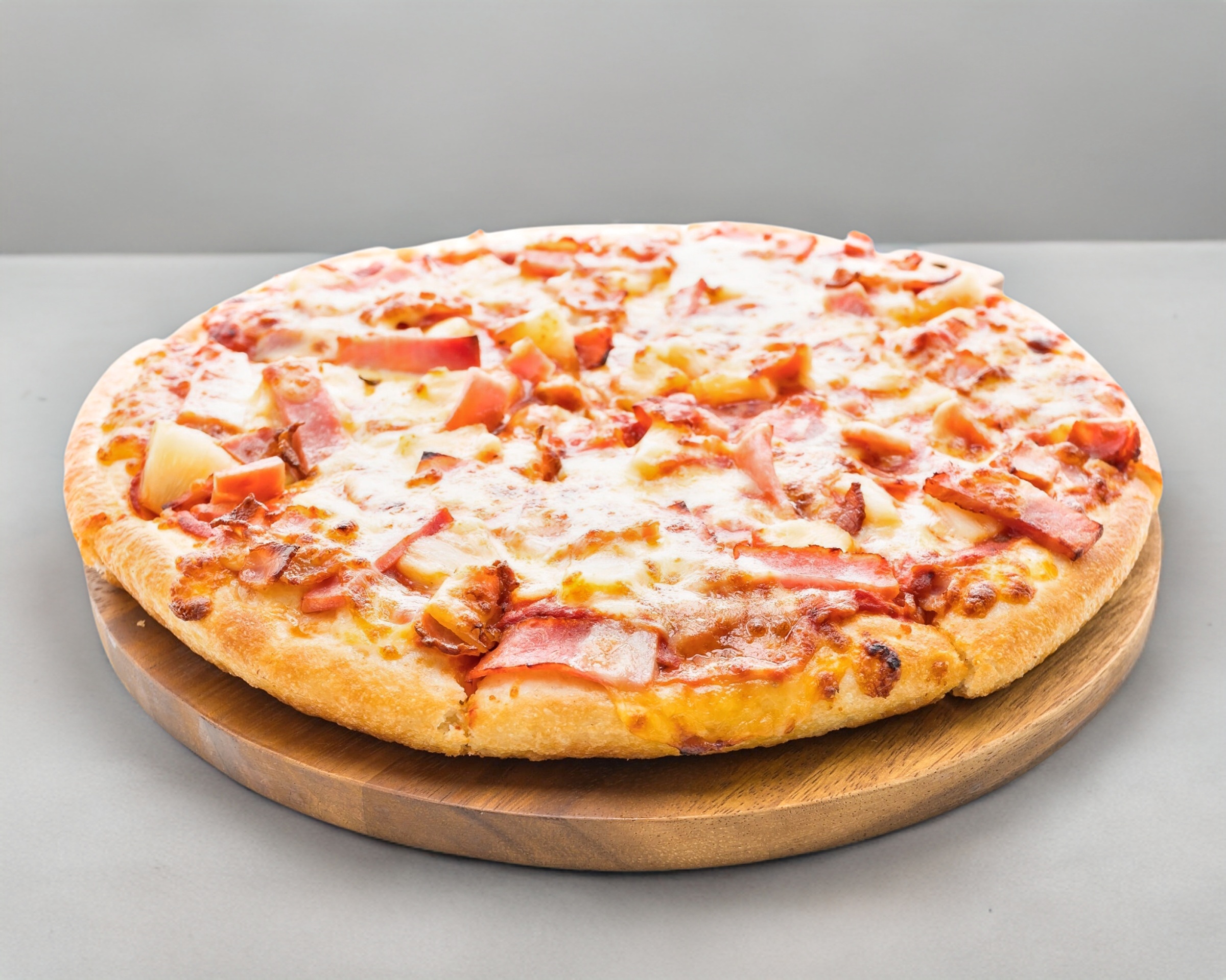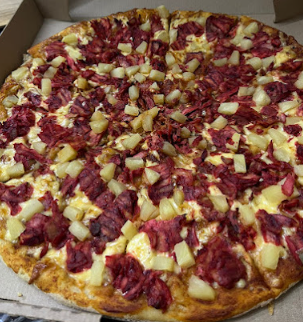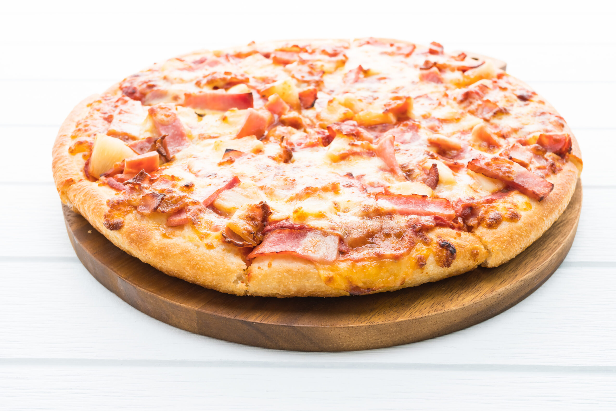 Pizza Hawaiana: salsa, queso, jamón y piña. + pan