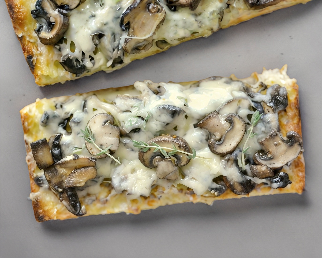 Pan, ajo, queso y champiñón.