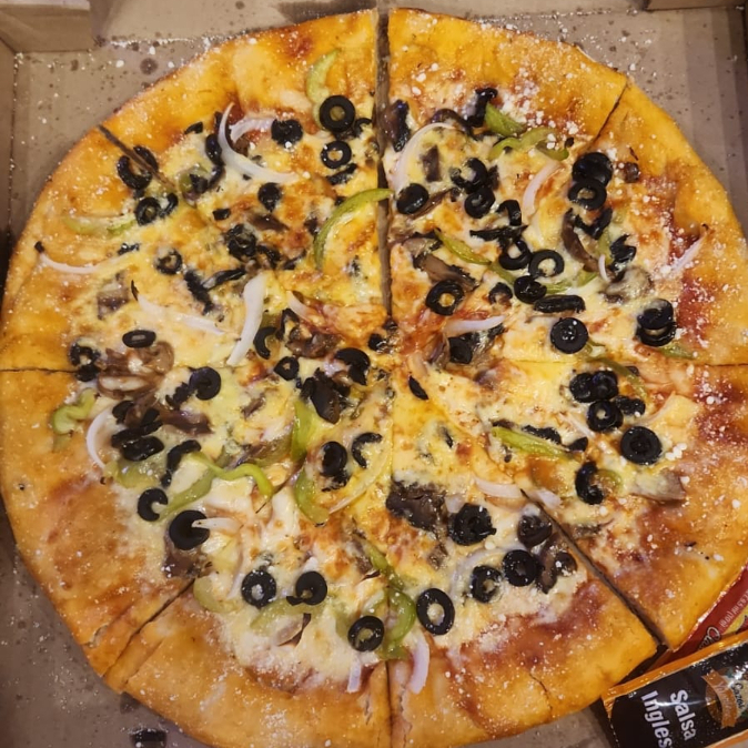 Cebolla, pimiento verde, champiñones y aceitunas negras