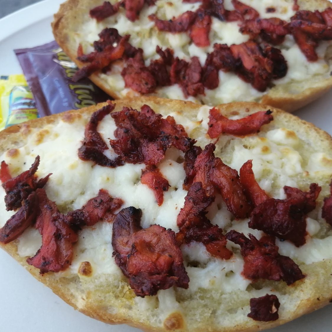 2 pizzas grandes de salchicha de pavo con pan de ajo