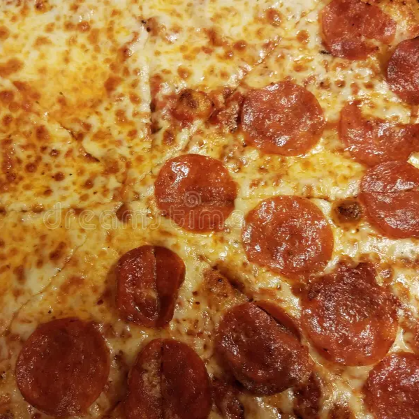 Pizza Grande 1/2 QUESO 1/2 PEPERONI Nuestra clásica favorita: una pizza grande con masa artesanal doradita y suave, bañada en salsa de tomate casera y cubierta con abundante queso mozzarella fundido.
