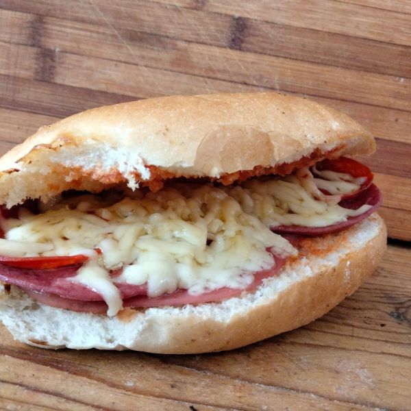Pizza grande de 12 rebanadas (pepperoni con queso manchego).