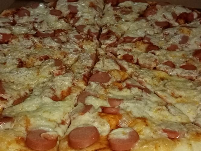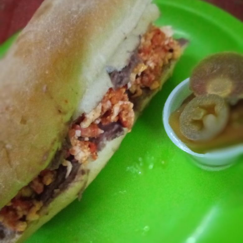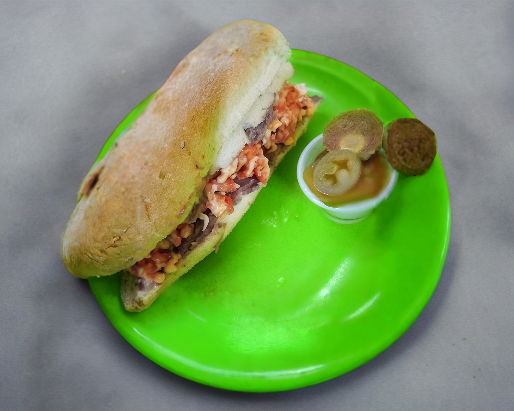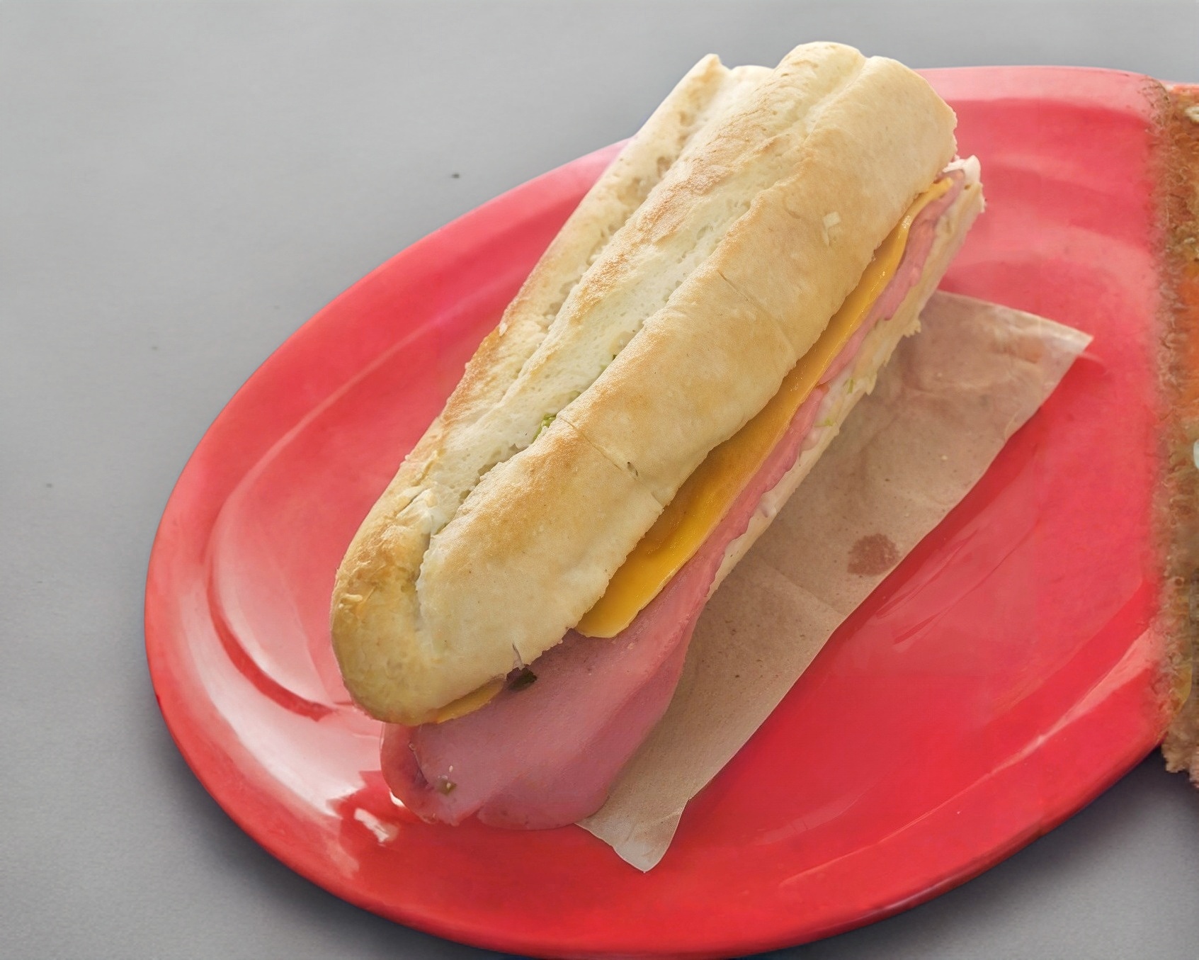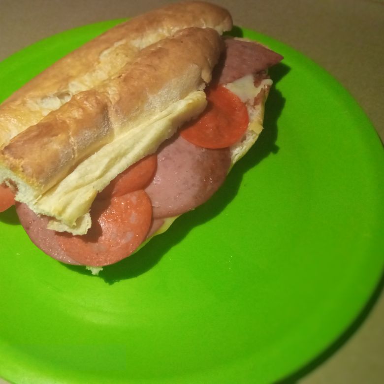 Bolillo con salsa de pizza con jamon de pavo y queso gouda