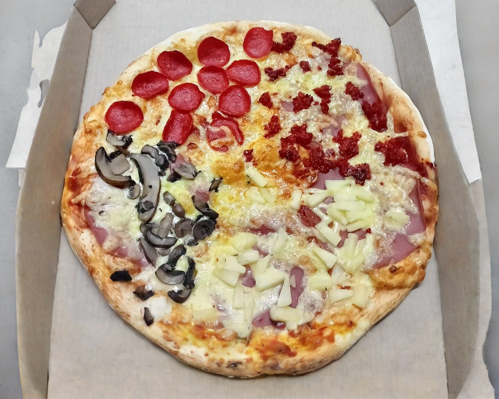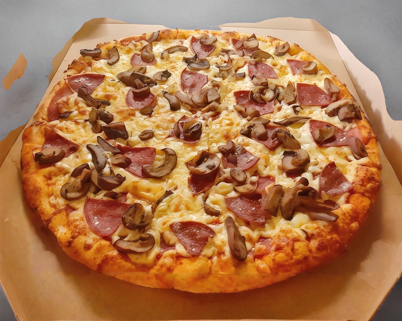 12 Rebanadas de jamón, salami, champiñones y queso manchego.
