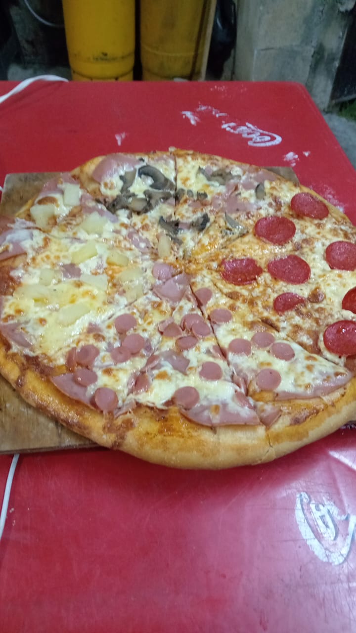 Jamón y salchicha, jamón y champiñón, pepperoni y hawaiana