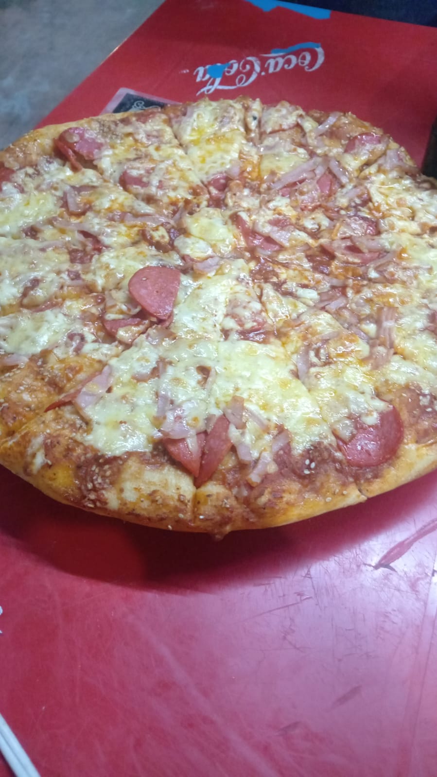 A elegir 3 ingredientes (salchicha, jamón, frijol, chorizo, pepperoni, tocino, salchicha de asar, cebolla, pimiento, champiñón, salami, jalapeño o piña), acompañado de pan con ajo