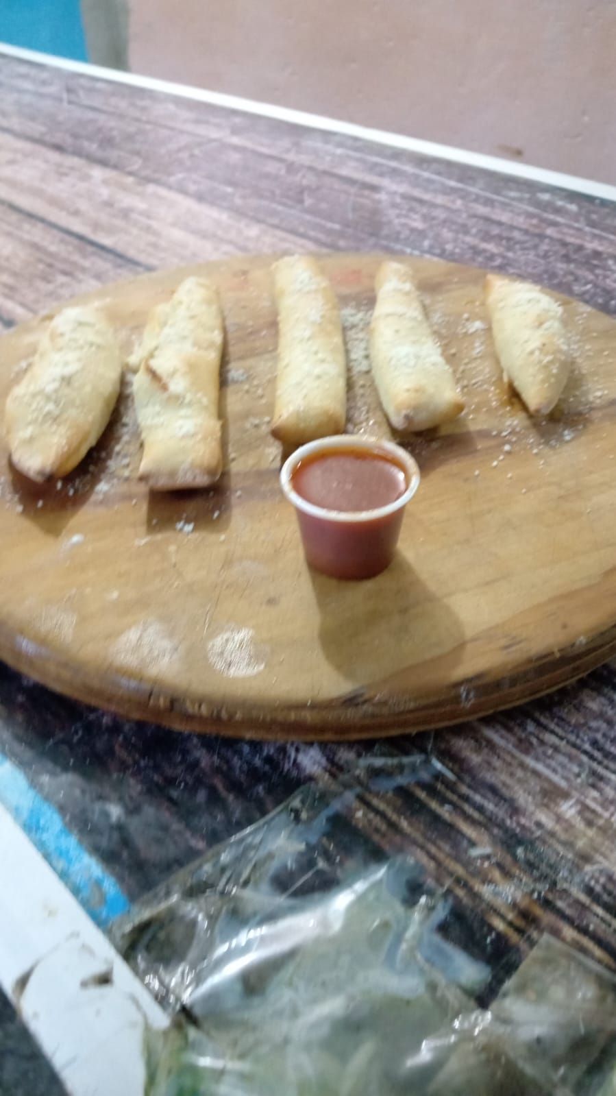 3 ingredientes a elegir barnizado con mantequilla de ajo e incluye sus salsas(salchicha jamón frijol chorizo peperoni tocino salchicha de asar cebolla pimiento champiñon salami jalapeño y piña)