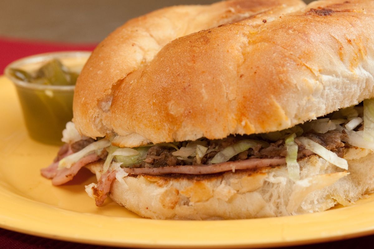 Jamón, queso, frijol, chorizo y jalapeño, pan con ajo,