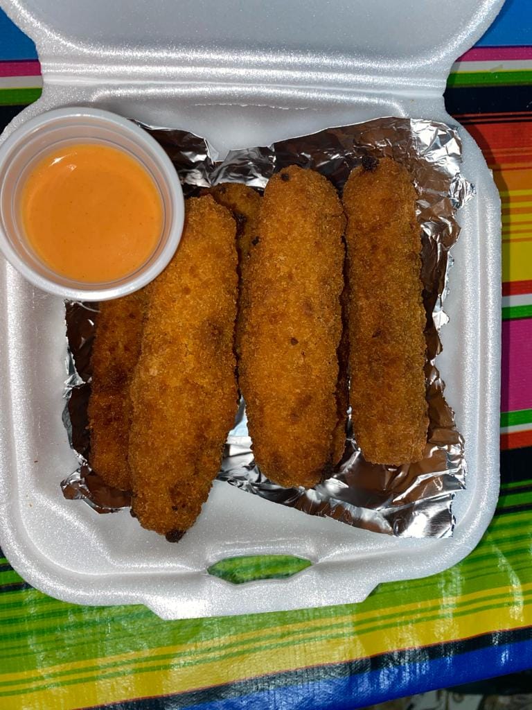 Banderillas (5 pzas).a base de queso manchego bañado de aceite de ajo y espolporiado de queso parmesano