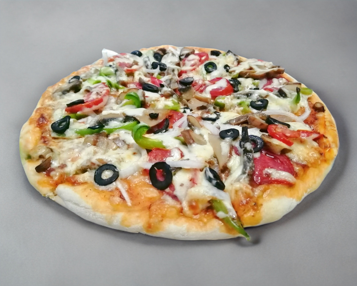Pizza grande vegetariana tomate,cebolla y acecutunas negras