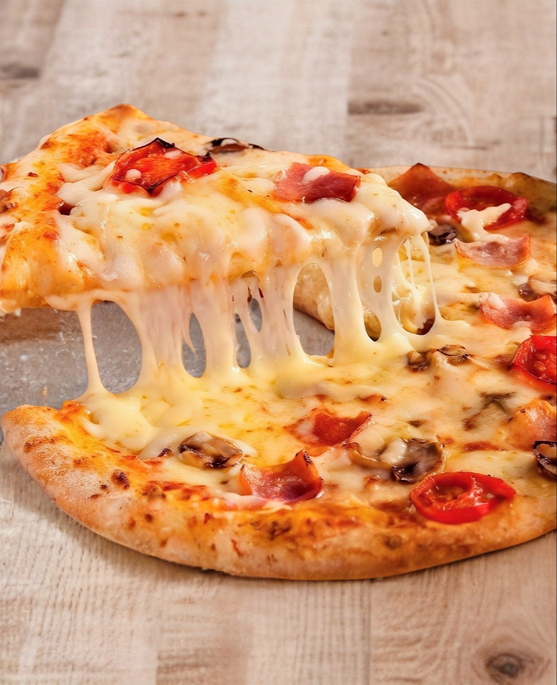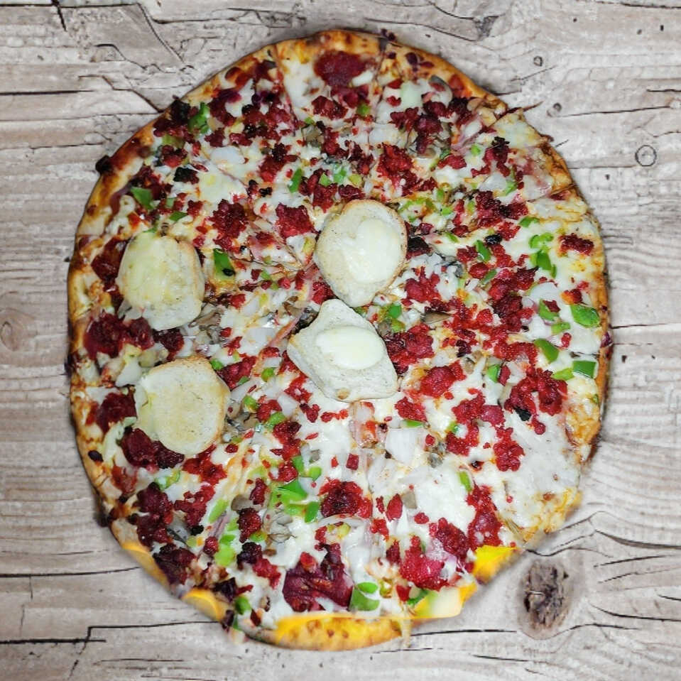 Pizza de 3 ingredientes para escoger+Pan con ajo y queso gratis.