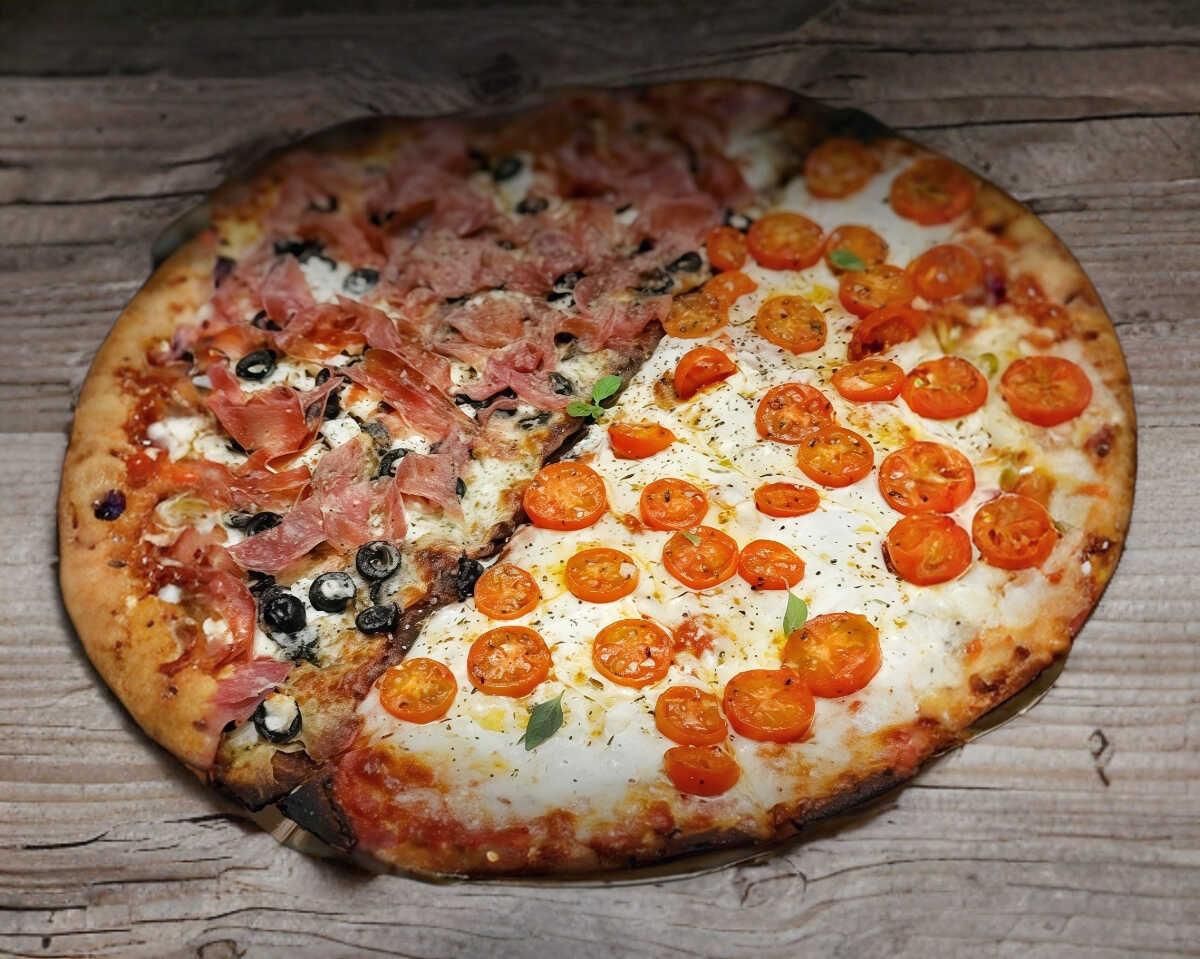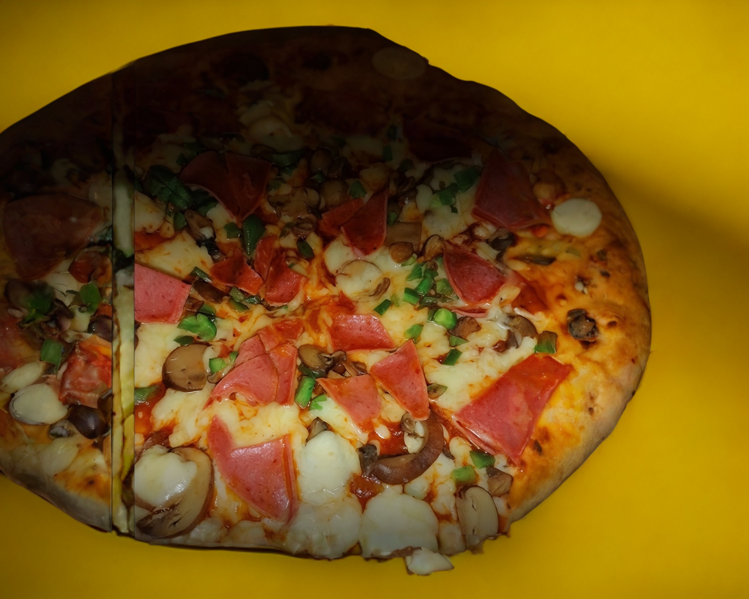 Pizza 1/2 Hawaiana y 1/2 Jamón Champiñones (Gde)