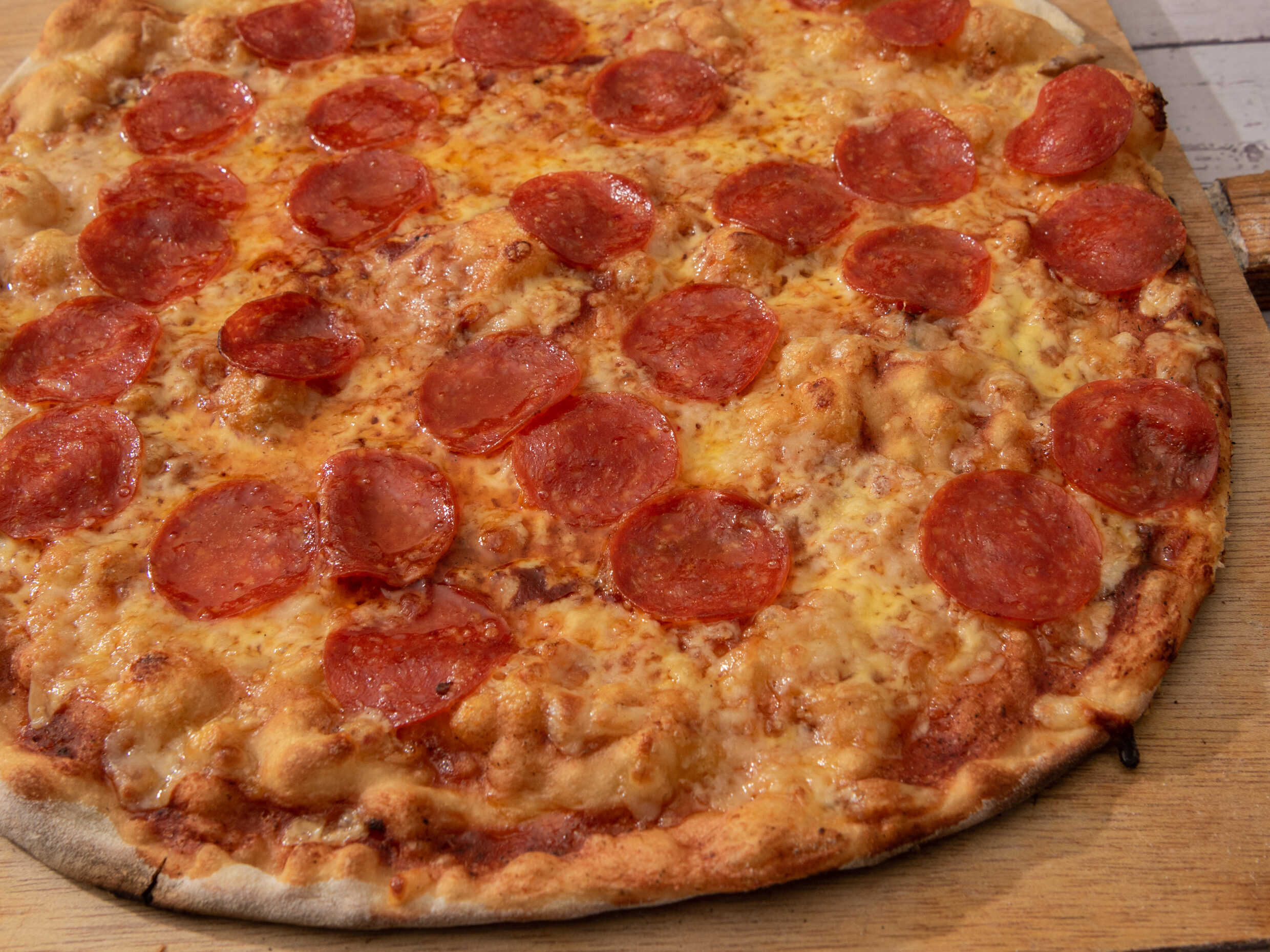Pizza grande de peproni y queso.