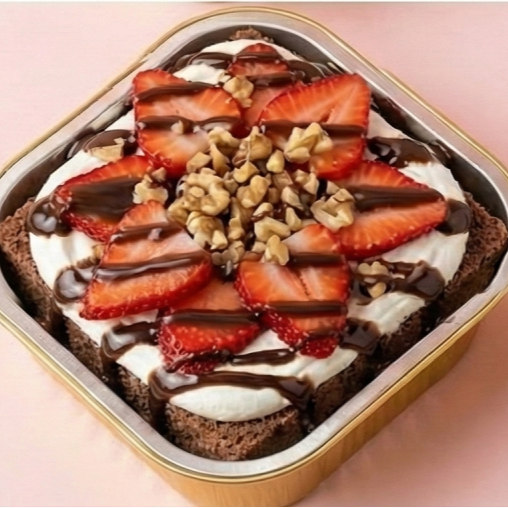 "El clásico romántico que nunca falla. base húmeda de chocolate tres leches cubierta con abundante crema chantilly. la protagonista es la fresa fresca, bañada en jarabe de chocolate intenso y un toque de nuez troceada. ¡la combinación perfecta de choco-fresa!"