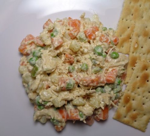 Cono artesanal relleno de guisado de carne molida con una capa de mayonesa
