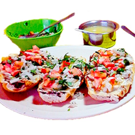 3 piezas de medio bolillo con frijoles refritos, jamón o pollo, queso manchego y pico de gallo (por separado para que le ponga a su gusto)