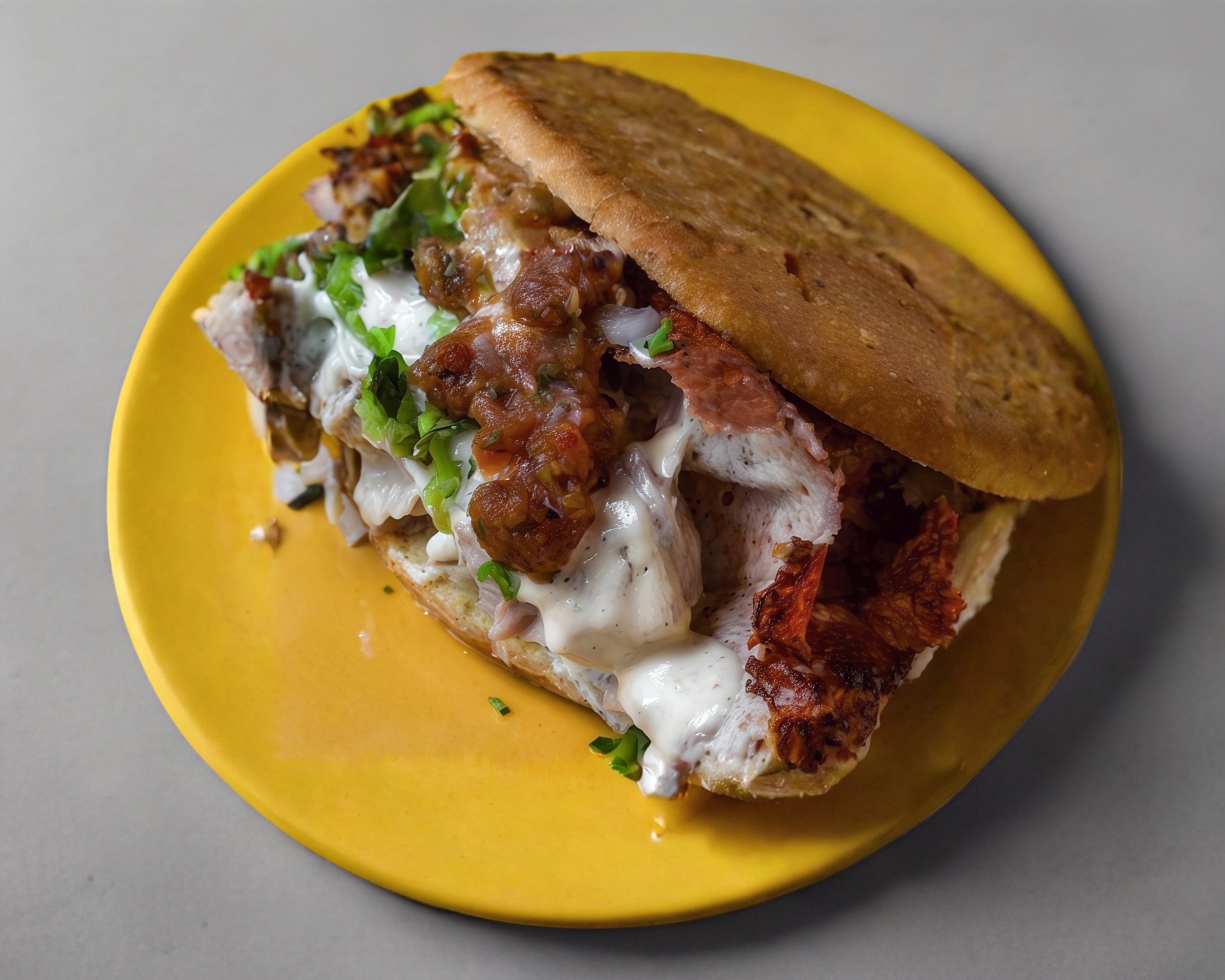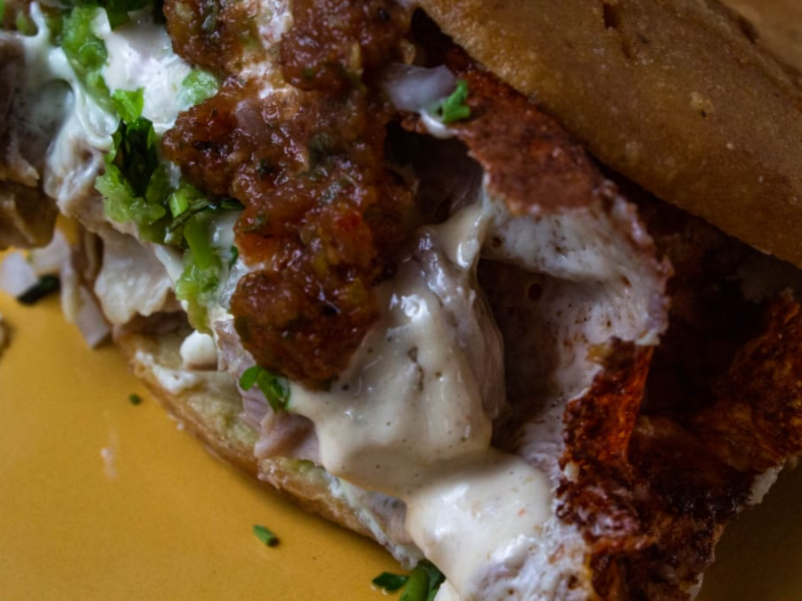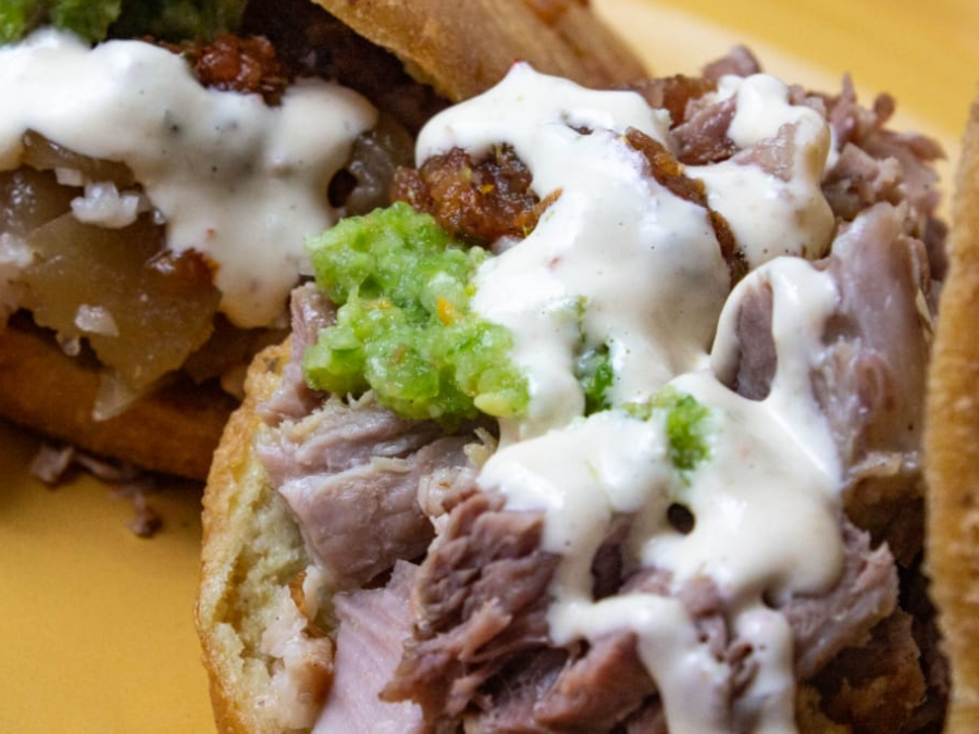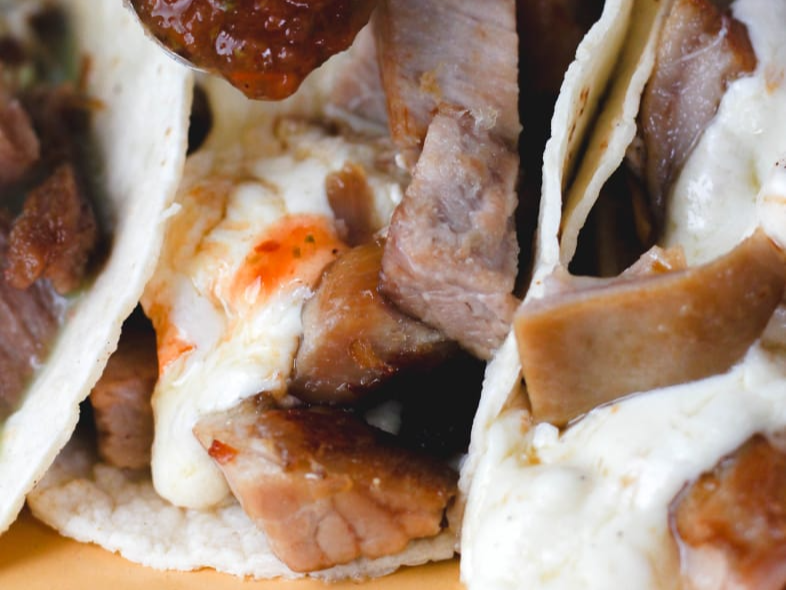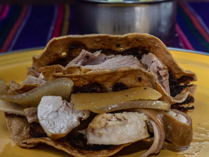 Jugosa Carne de Chamorro envuelta en doble tortilla de maíz nixtamalizado