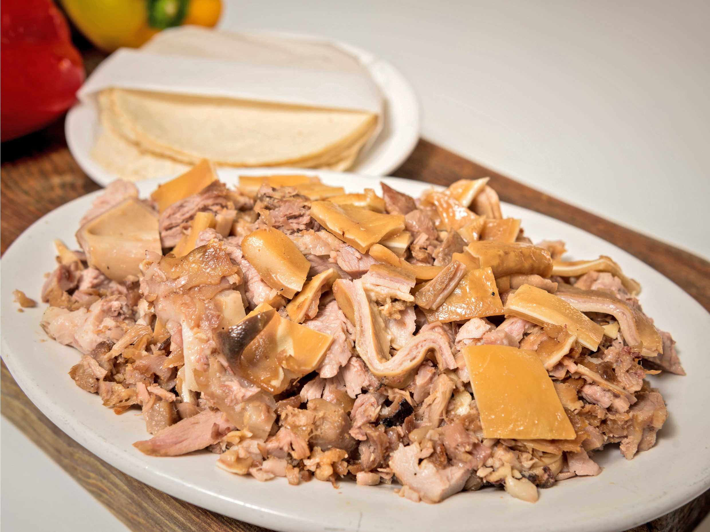 Pan crujiente y dorado con mantequilla de la casa rellena de nuestra carnitas