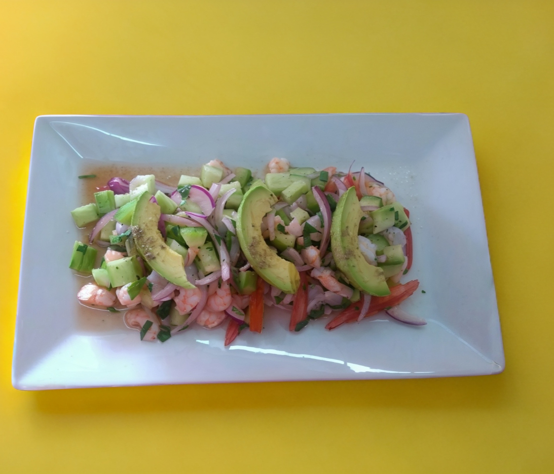 camaron vinagreta, verduras, mayonesa.