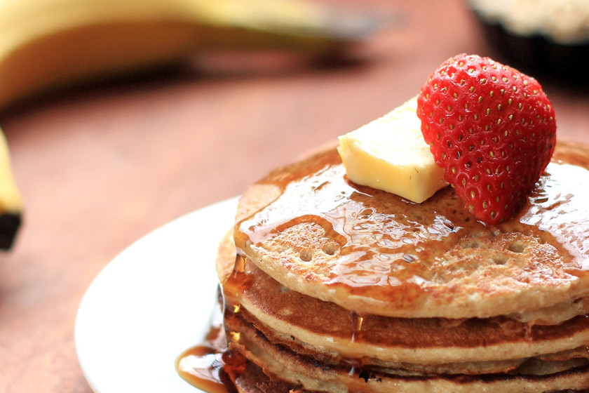 2 pzas Hot cakes de avena amaranto quinoa y chia con fruta y miel