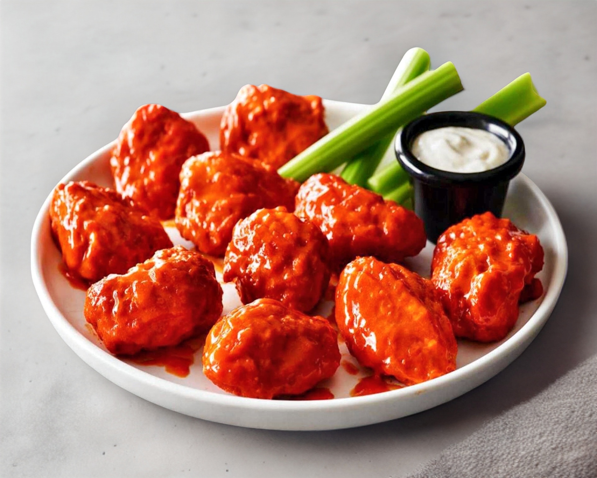 8 piezas de alitas bañadas de salsa a elegir, acompañadas con un aderezo