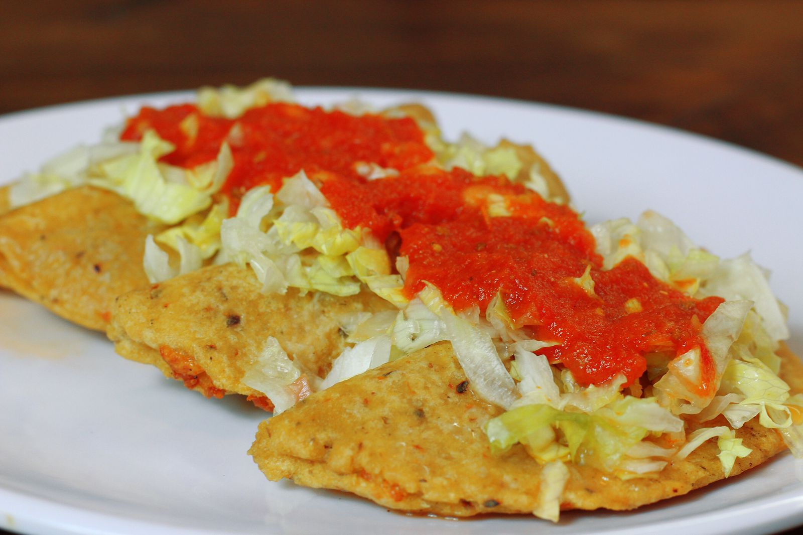 Incluye 4 piezas, empanada de carne molida, acompañada de lechuga y salsa de tomate.