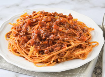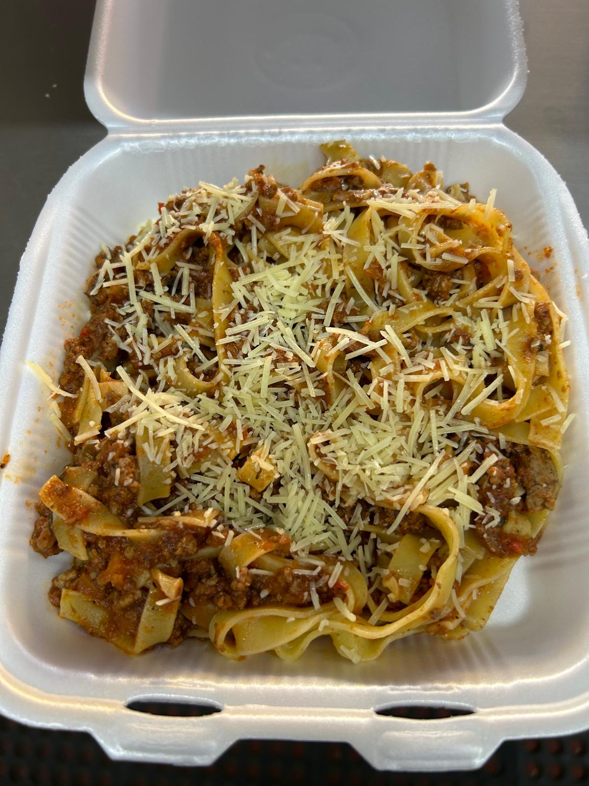 Pasta Penne Bolonesa con Mozzarella con porcion de Verduras y Pan para 2