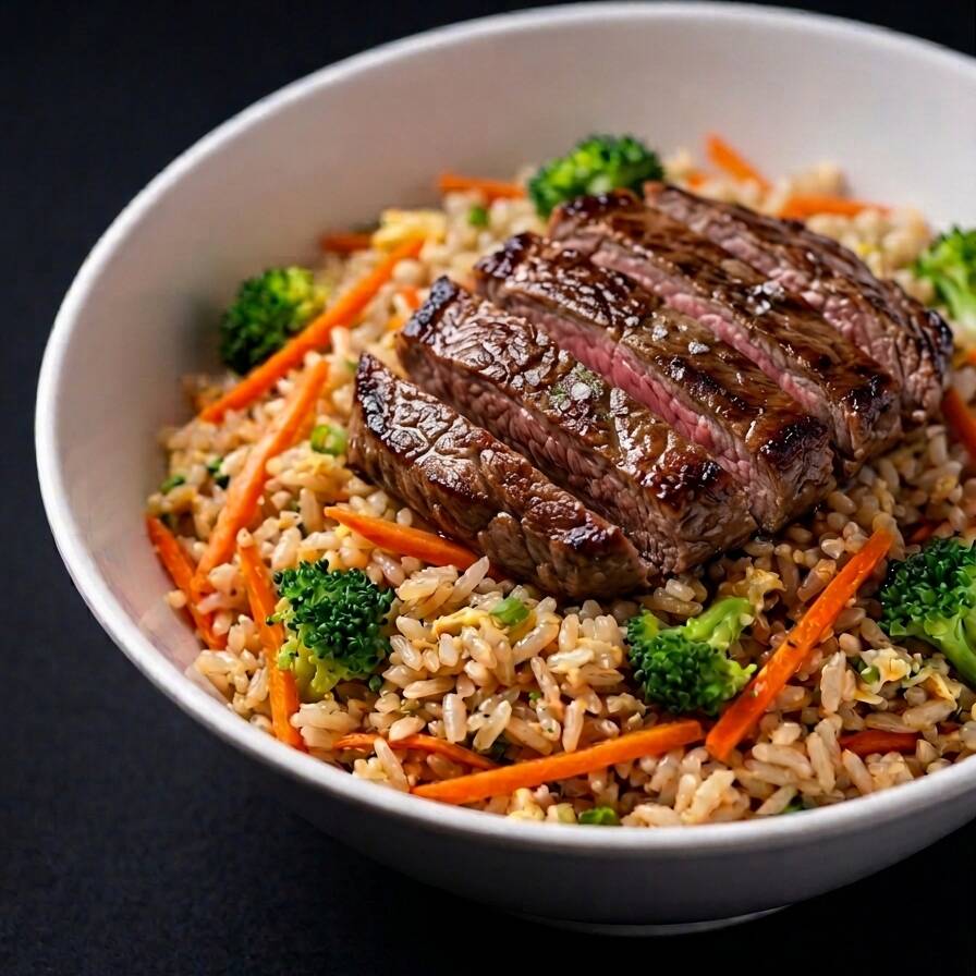Arroz frito en Soya, con Zanahoria y Brócoli y abundante proteína