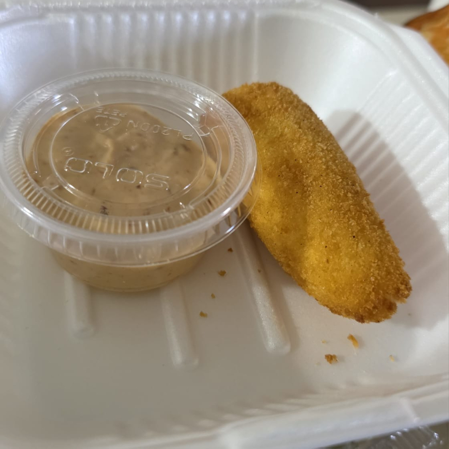 PF: empanizado con salsa bbq aparte, PD: pollo, aguacate y zanahoria.