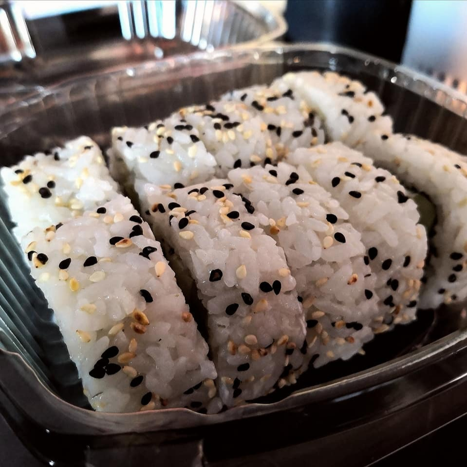 Pf: arroz con ajonjolí. pd: philadelphia, pepino, aguacate y Surimi.