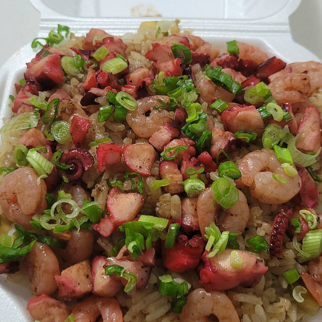 Arroz a la plancha salteados con especias japonesas, pulpo y camarones. Orden individual.