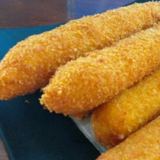 3 Brochetas empanizadas con queso manchego, acompañadas de aderezo chipotle.