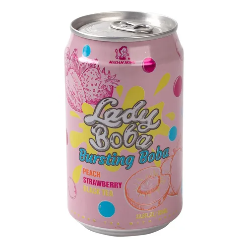 Bubble tea bursting boba durazno y fresa, madam hong, 320 ml contiene tapioca.