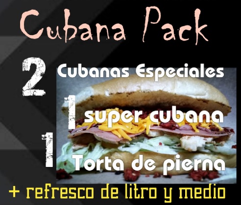 1 cubana normal, 1 cubana especial, 2 súper cubanas, , mas 1 pepsi de 1 Litro.