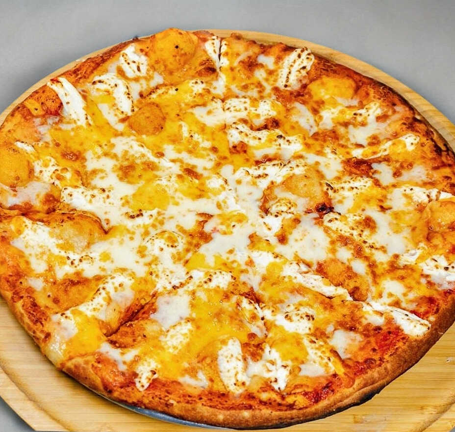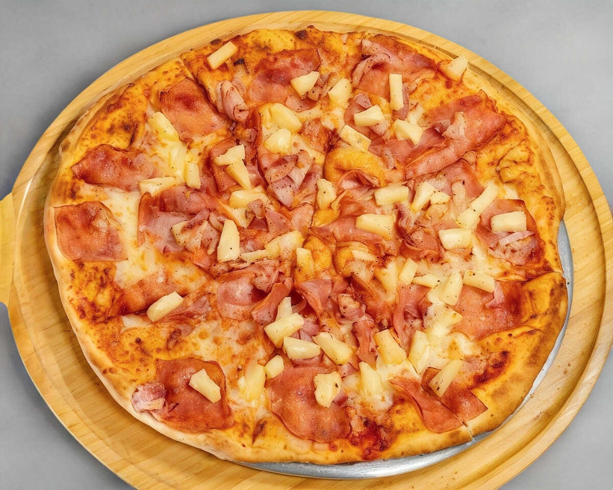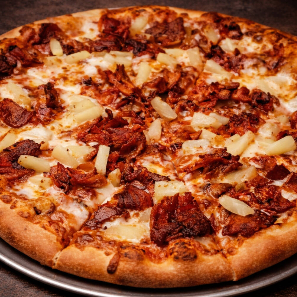 Base tomate y queso, jamón, tocino, piña y salsa de mango habanero.