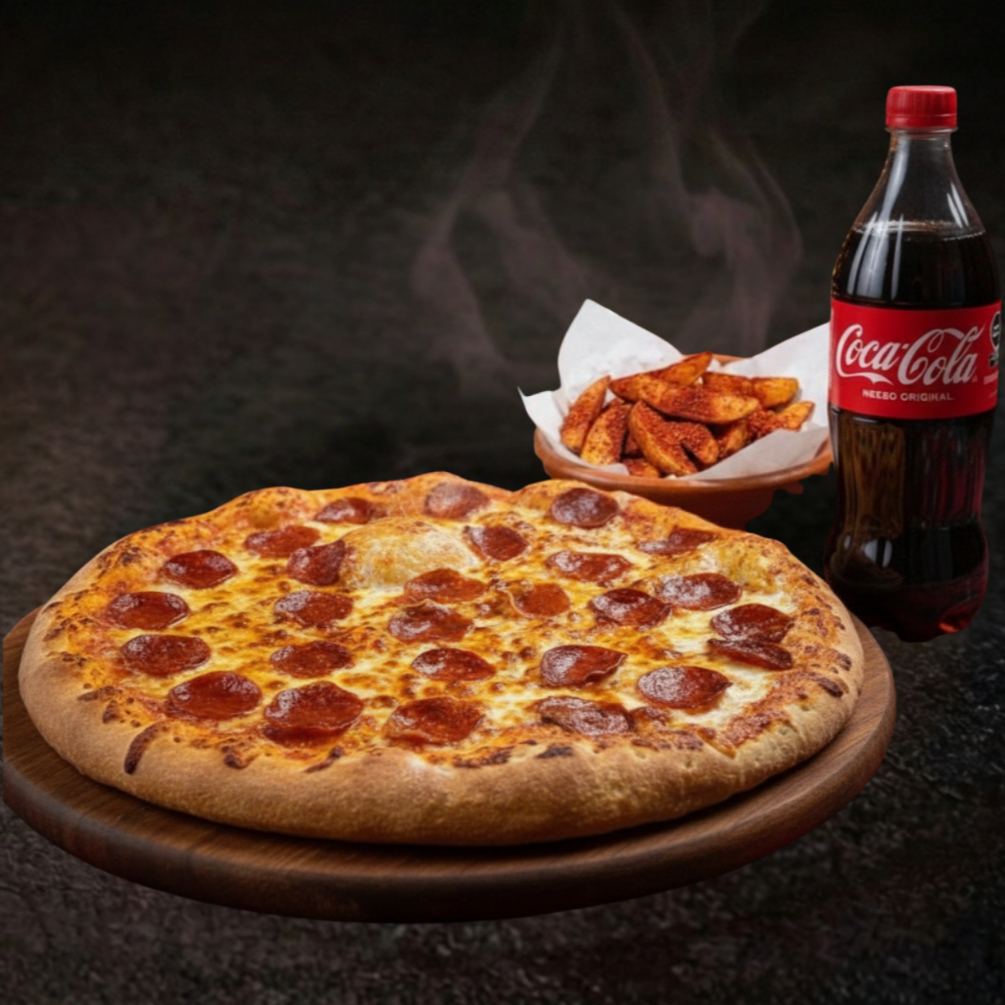 Pizza 1 Ingrediente*1 + Coca Cola Sin Azúcar 1.35 Litros*1 + Papas Gajo*1