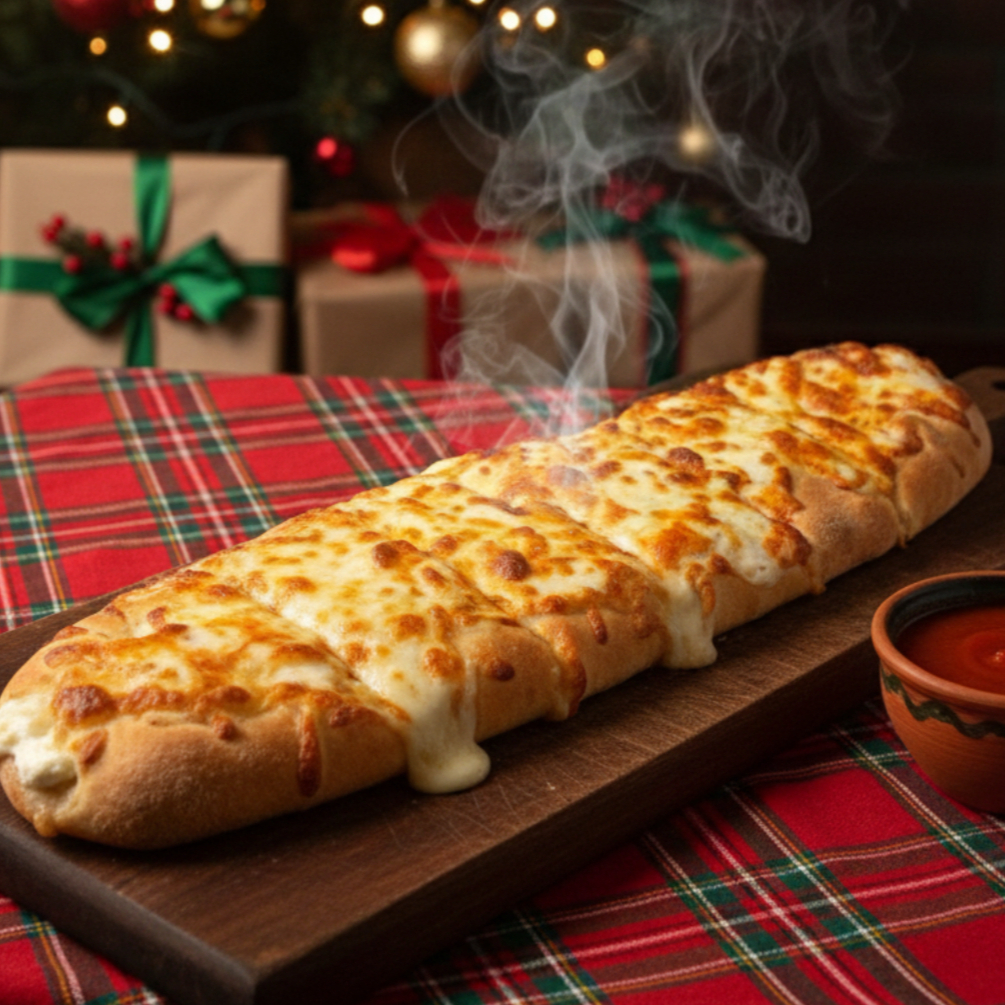 Pan relleno de queso Philadelphia y mozzarella, con queso mozzarella encima.