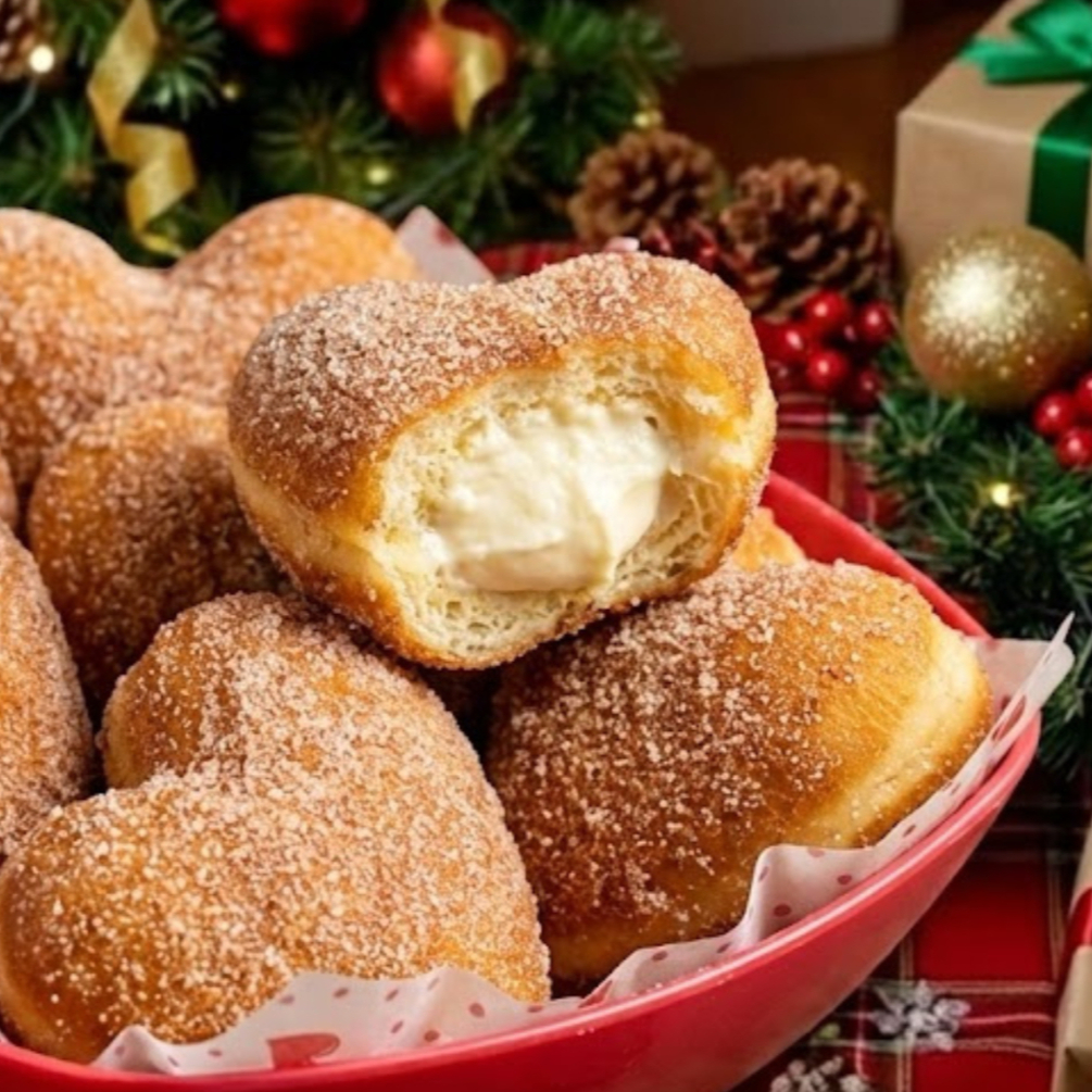 4 Piezas de panecitos sabor donas, bañados con azúcar y canela, rellenos de queso Philadelphia.