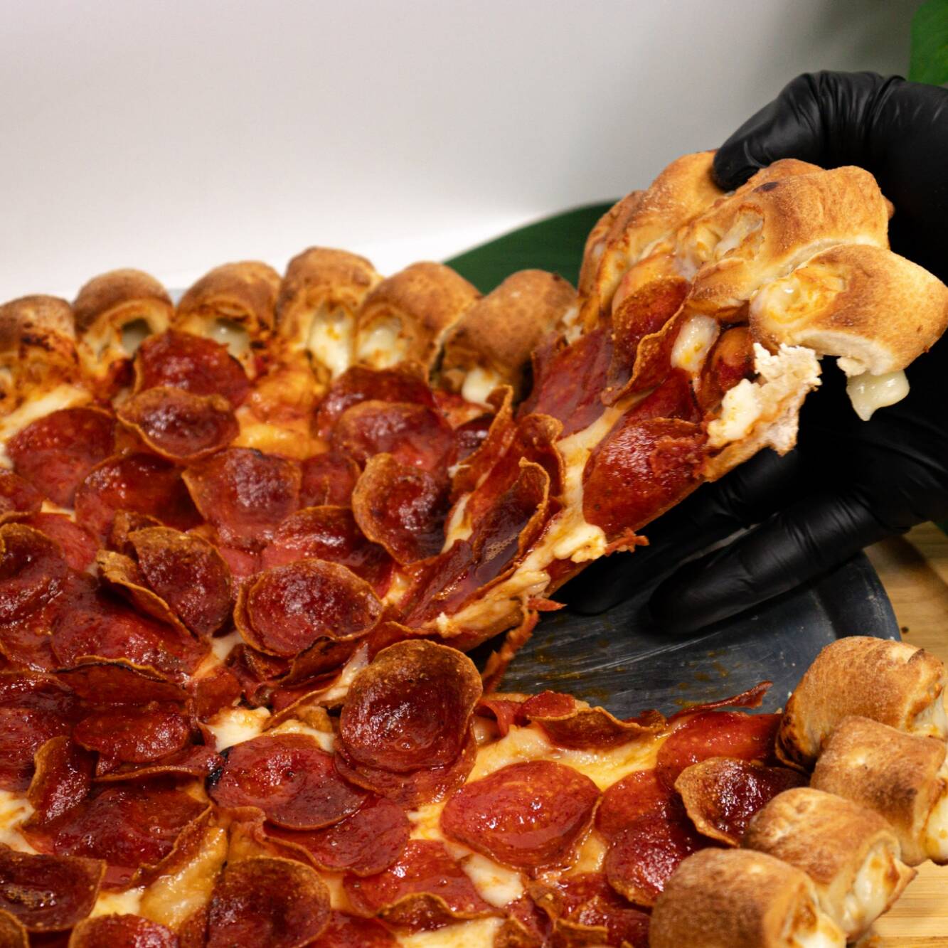 Masa para pizza, queso mozzarella 100% leche, triple porción de pepperoni, orilla de queso cheesy bites Mozzarella