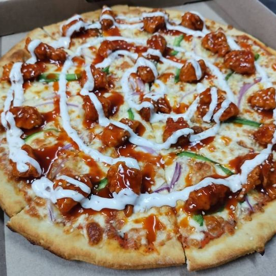 JAMON SALAMI, CHAMPIÑONES. Y BONELES CON SALSA BUFALO Y BBQ DOBLE QUESO