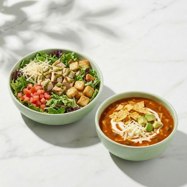 Combo con sopa y ensalada a elección, incluye aderezo a tu gusto.